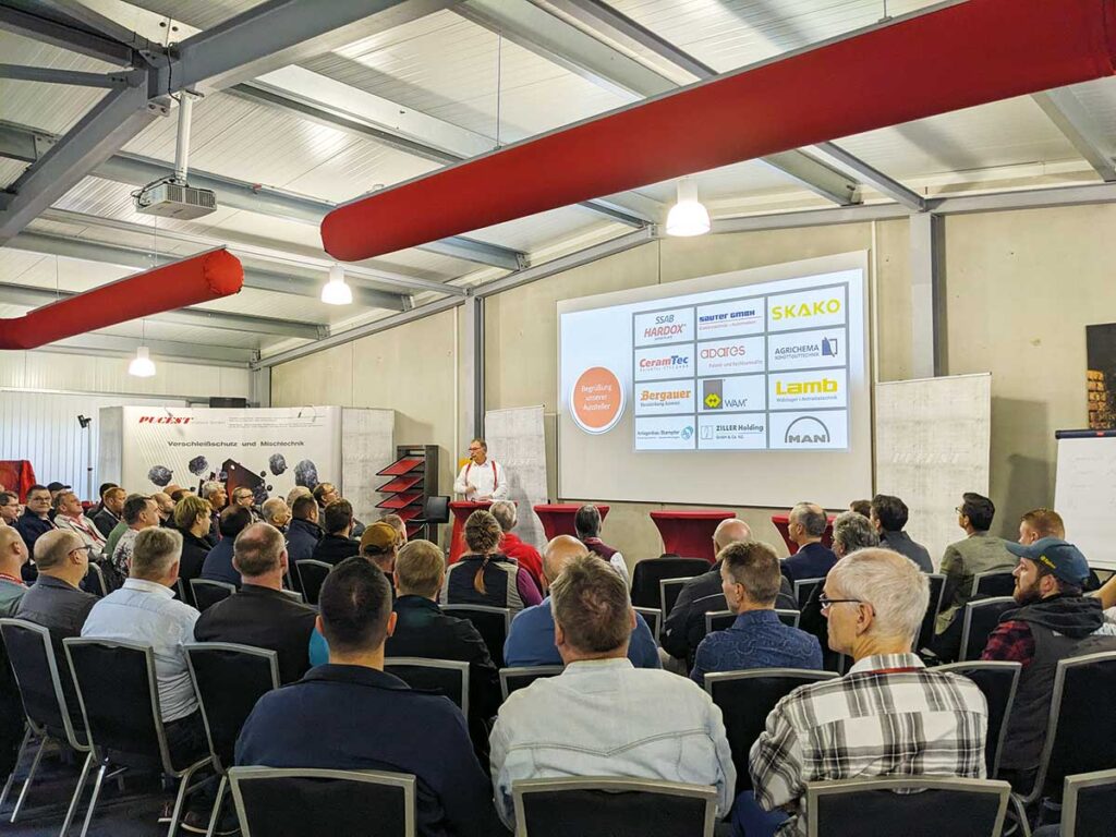 Das weiß auch Detlef Bauer, der an diesem Dienstagmorgen mit herzlichen Worten die PUCEST Hausmesse eröffnete und anschließend den Partnerunternehmen das Wort übergab, damit sie einen Kurzeinblick in ihre Expertise geben konnten. Viele von ihnen begleiten die Hausmesse schon seit Jahren – etwa SSAB-Hardox, Hersteller hochwertiger Verschleißbleche, oder die Sauter GmbH, spezialisiert auf Automatisierung in der Betonindustrie.